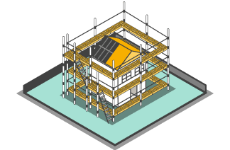 Service > クサビ事業 住宅足場から現場仮囲い、仮設トイレ、 環境備品、オリジナル看板に至るまで 住宅建設現場に関わるあらゆる 仮設機材に対応いたします。