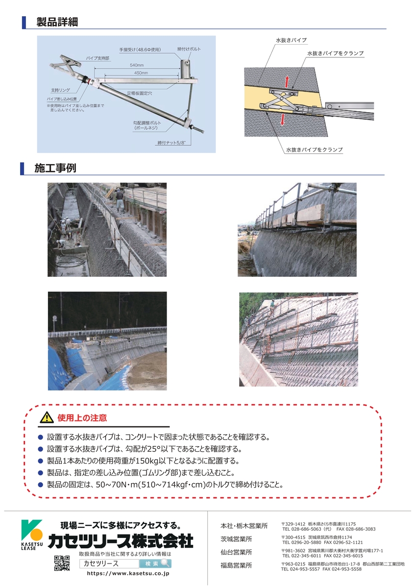 水抜きパイプ足場
